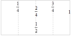 "Remember that an inch can be divided into halves and quarters. Assume the piece of paper I am holding is 1 unit long. For now, let imagine that the paper represents 1 inch. (Use any blank sheet of white paper.) "If I fold the paper in half and then unfold it, the crease indicates the ½ inch mark. The 1 (or numerator) represents the part, whereas the 2 (or denominator) represents the number of parts that make a whole. If I fold the sheet of paper back in half and then in half again, I am dividing the inch into fourths, quarters, or 4 equal parts. When I unfold the sheet of paper now, I see two new creases. The first new crease represents ¼ inch. Consider how the ½ inch crease could be labeled 2⁄4 inch. There is still one crease that has not been labeled; the third crease represents ¾ inch."